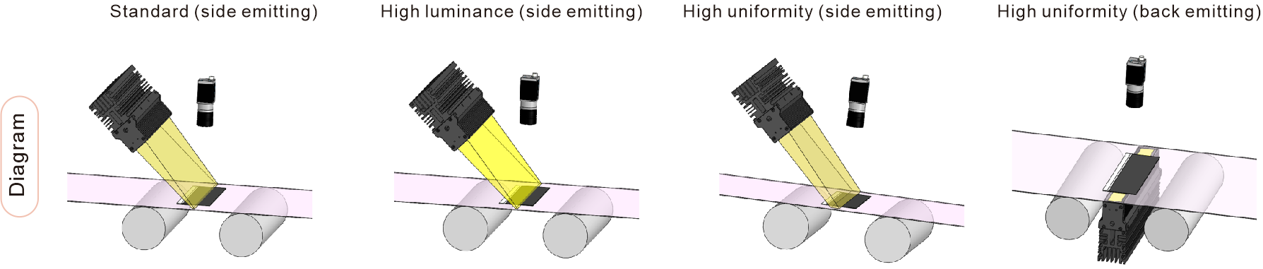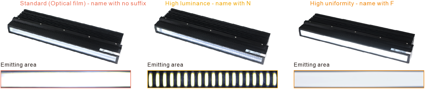 Standard model for extensive applications, high uniformity model for bright FOV, and high luminance model for dark FOV.