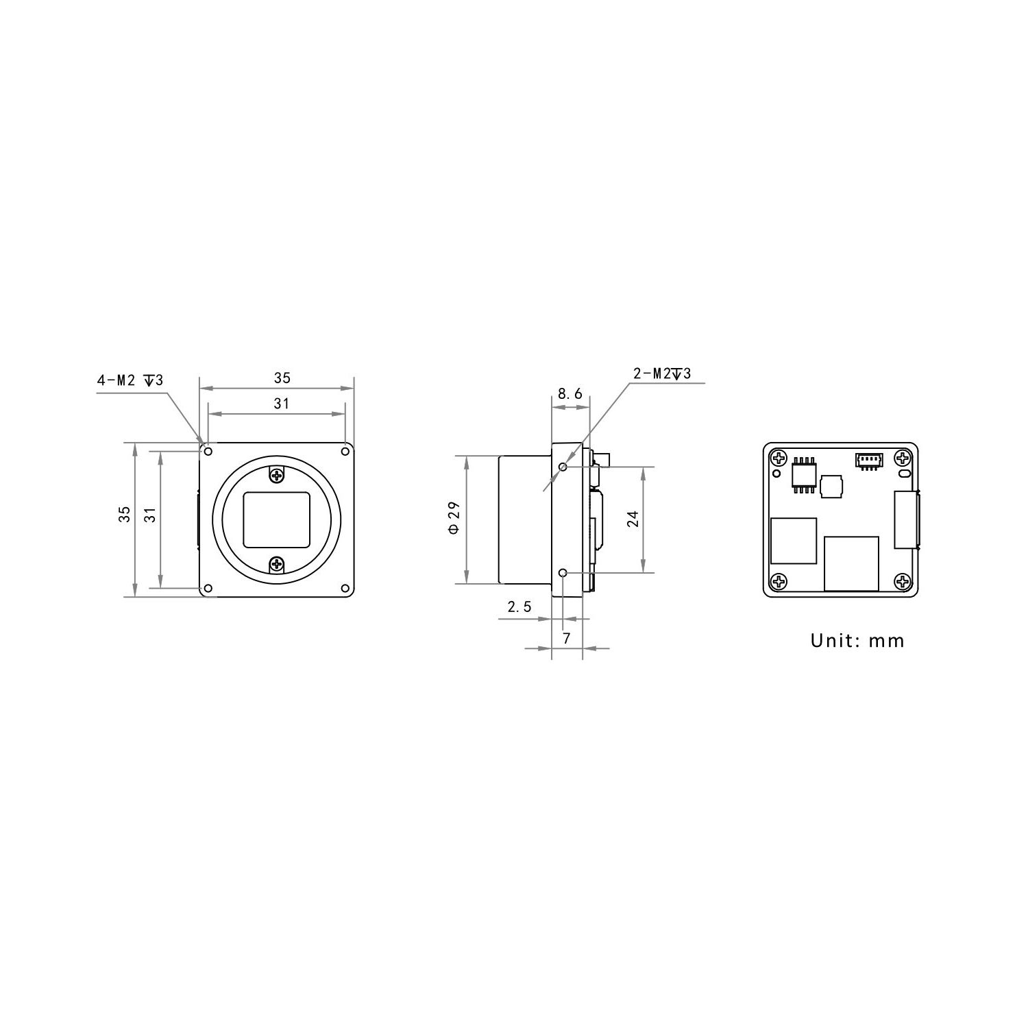 The board-level camera can support a variety of lens interface options, bare board (B), C interface (C) and M12 interface (S) to fulfill various requirements.