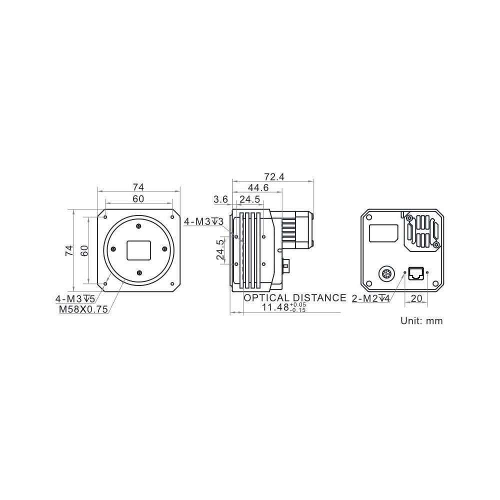 | Mechanical | Lens mount | M58-mount, optical back focal length: 11.48 mm (0.5″) |