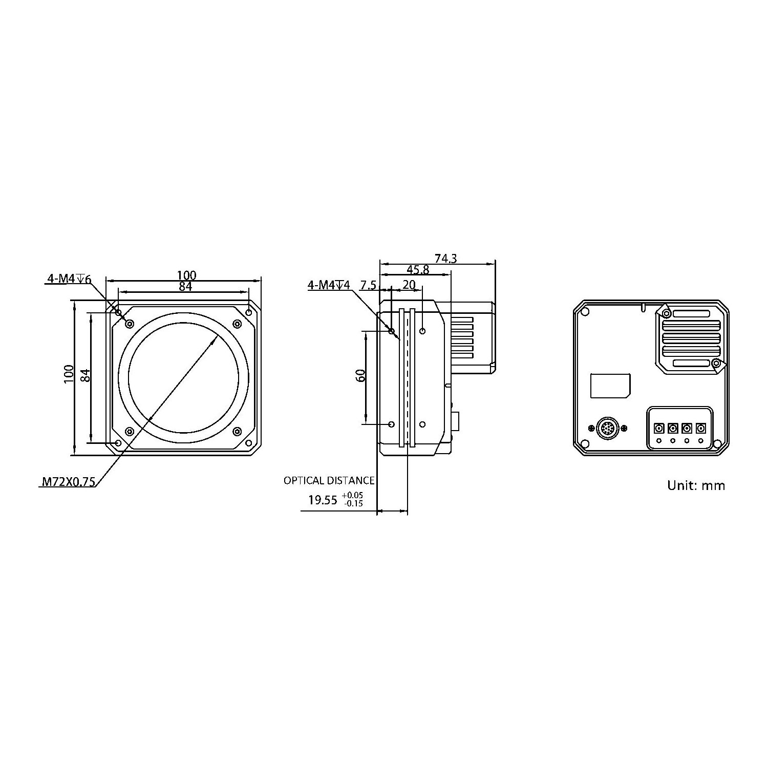 | Mechanical | Lens mount | M72*0.75, optical back focal length 19.55 mm (0.8″) |