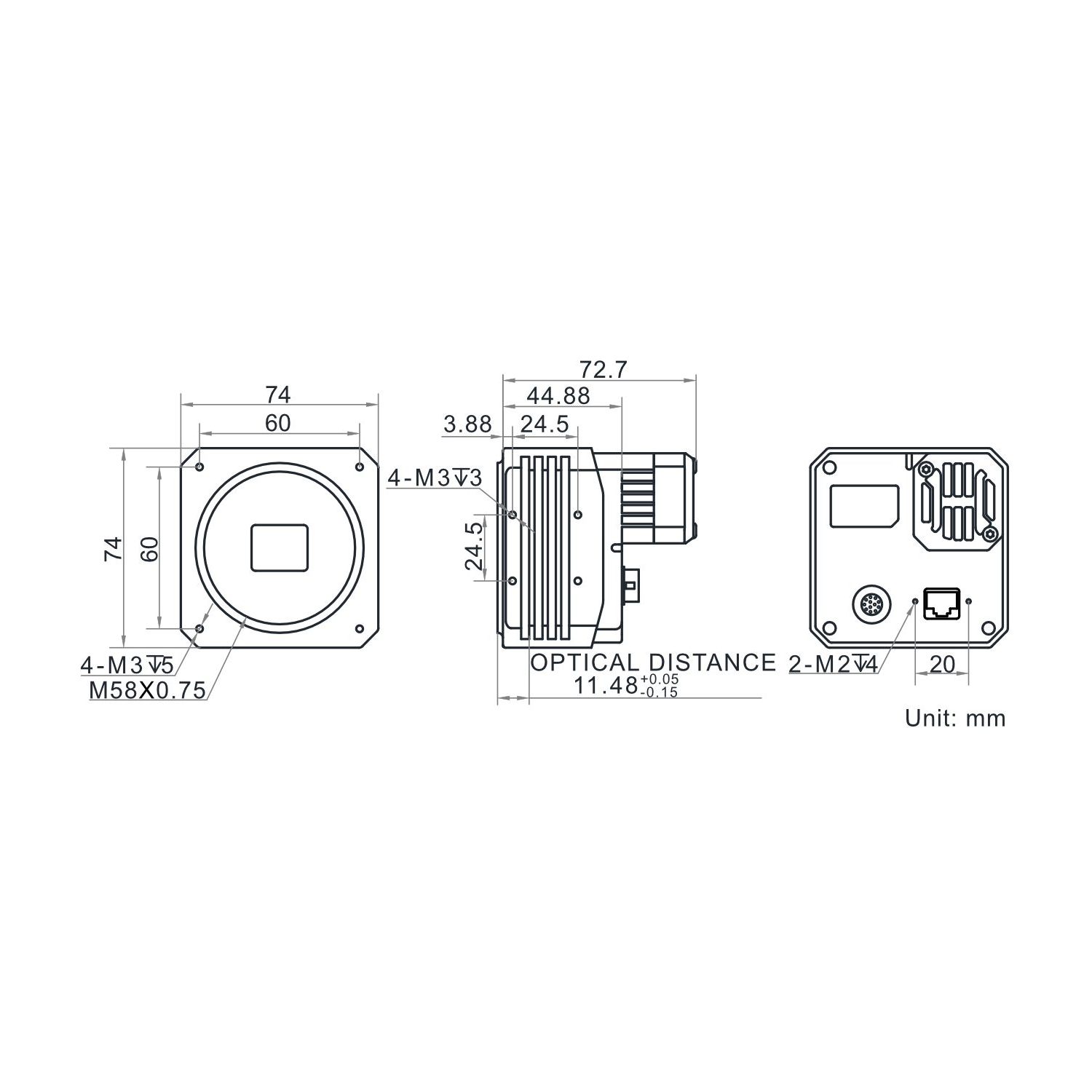 | Mechanical | Lens mount | M58-mount, optical back focal length 11.48 mm (0.5″) |