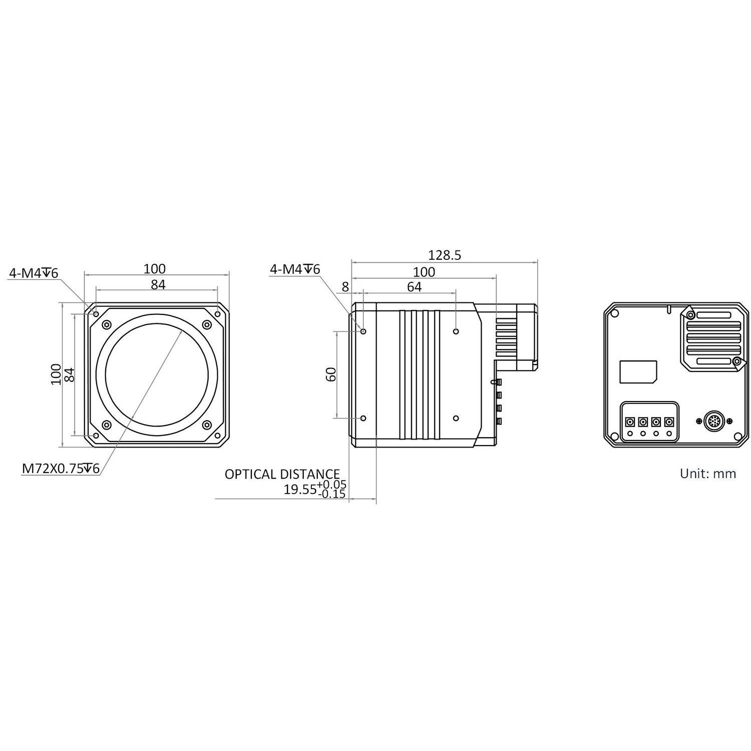 | Mechanical | Lens mount | M72-mount, optical back focal length 19.55 mm (0.8″) |