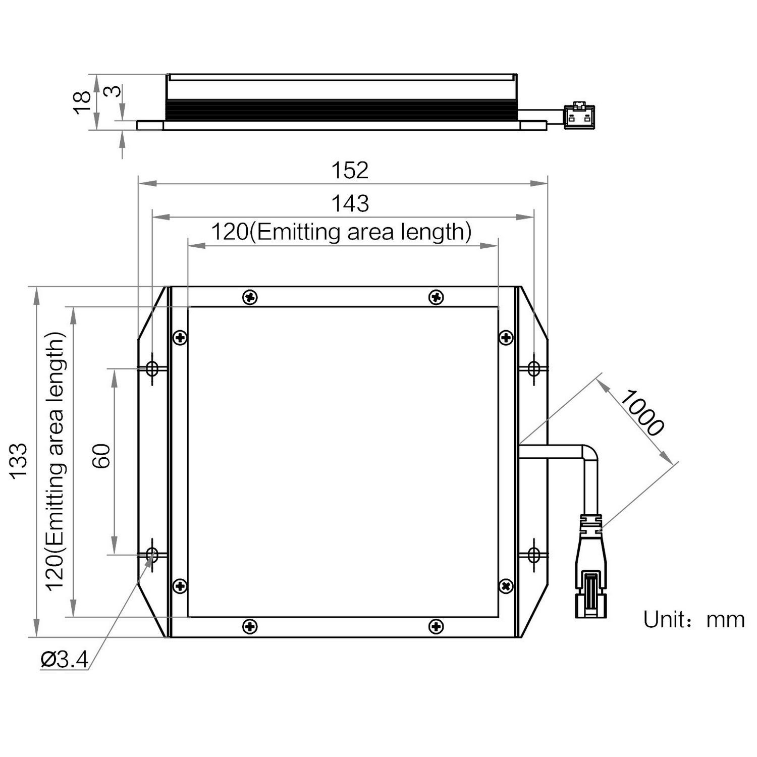| Emitting area dimensions | 120 mm × 120 mm | |