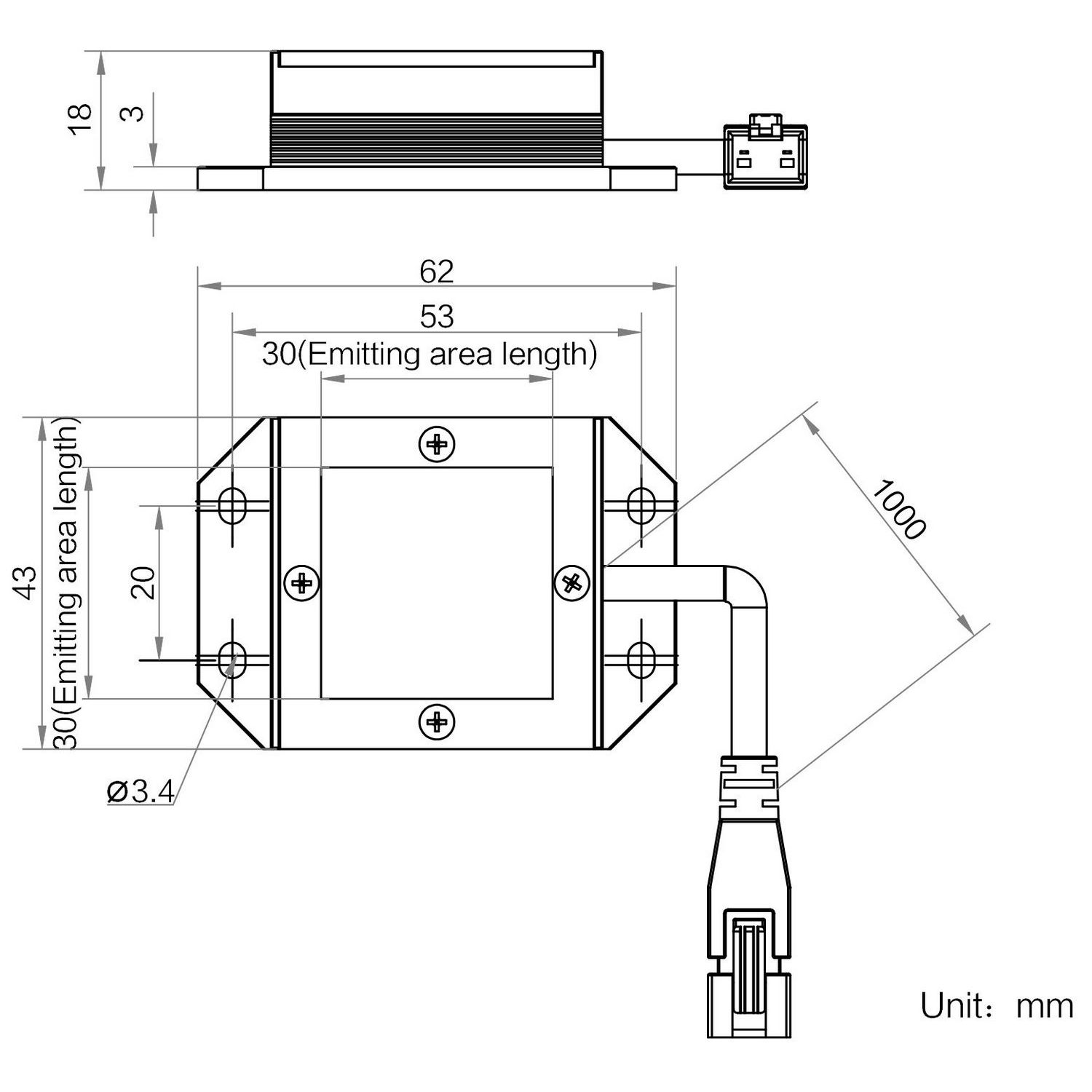 | Emitting area dimensions | 30 mm × 30 mm | |