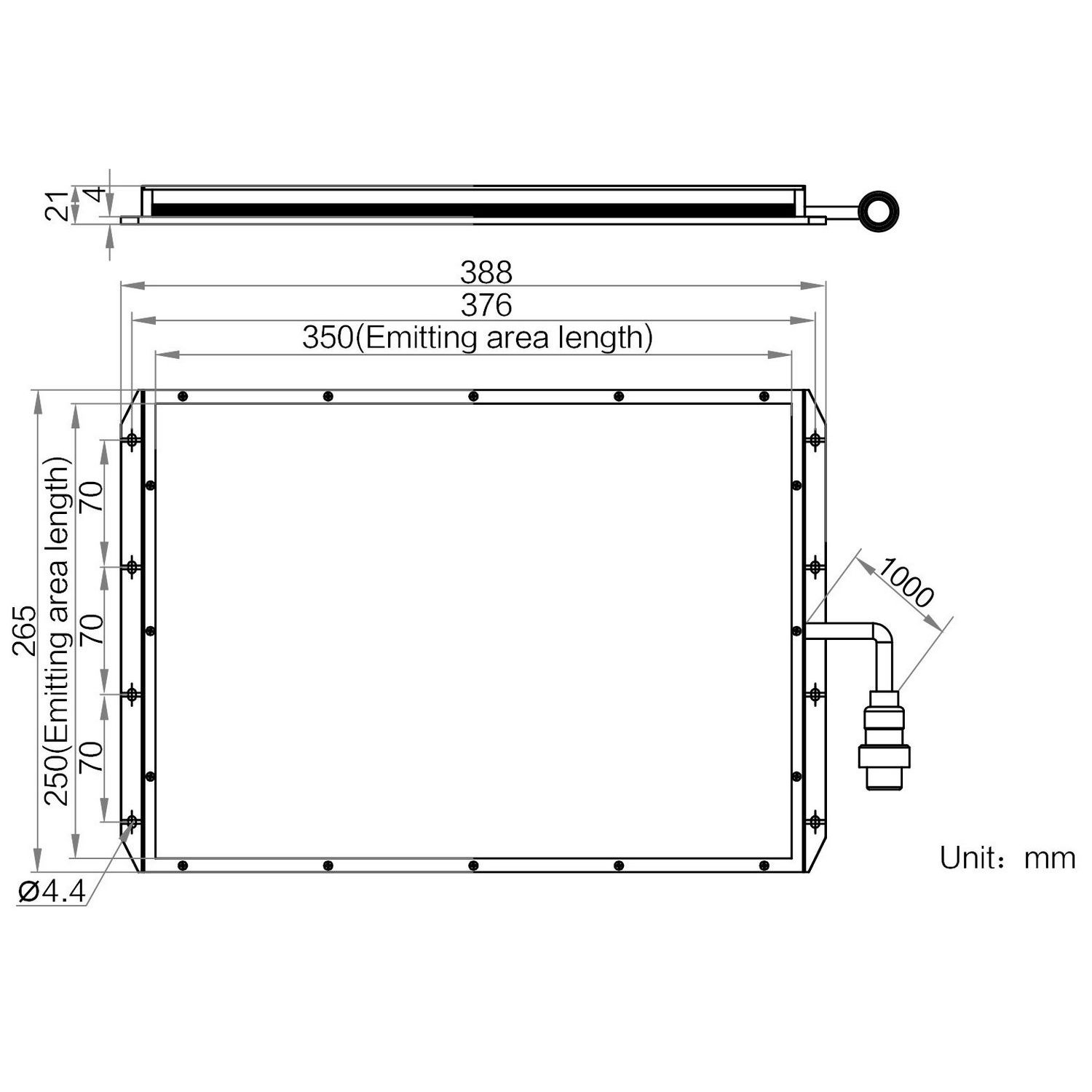 | Emitting area dimensions | 350 mm × 250 mm | |