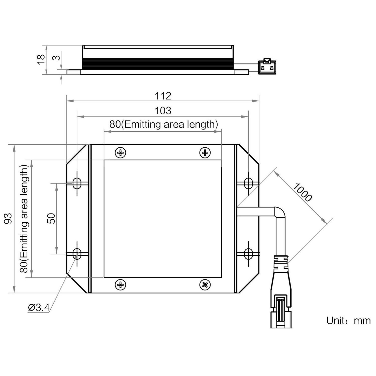 | Emitting area dimensions | 80 mm × 80 mm | |