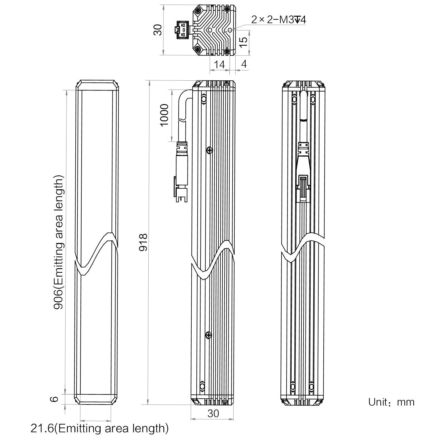 | Emitting area dimension | 906 mm × 21.6 mm | |