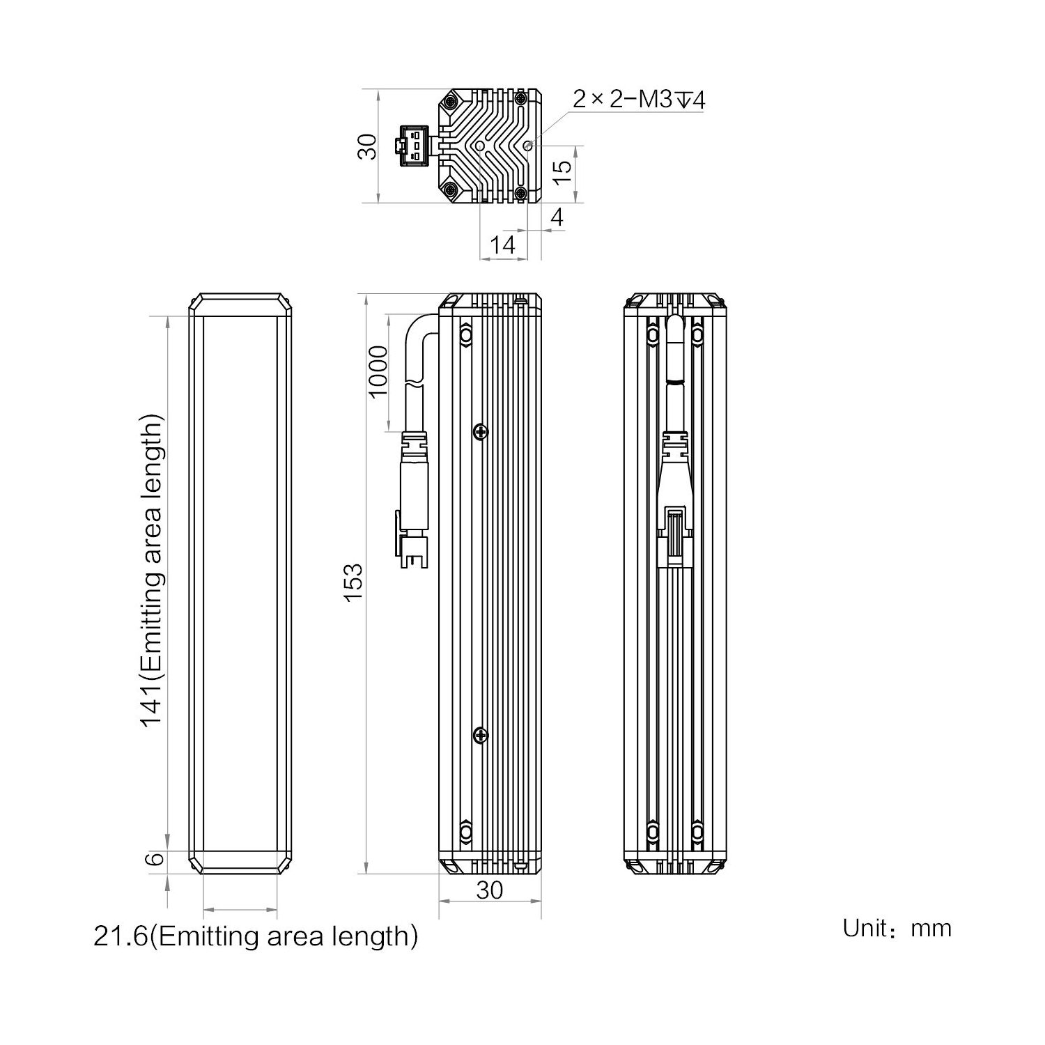 | Emitting area dimensions | 141 mm × 21.6 mm | |