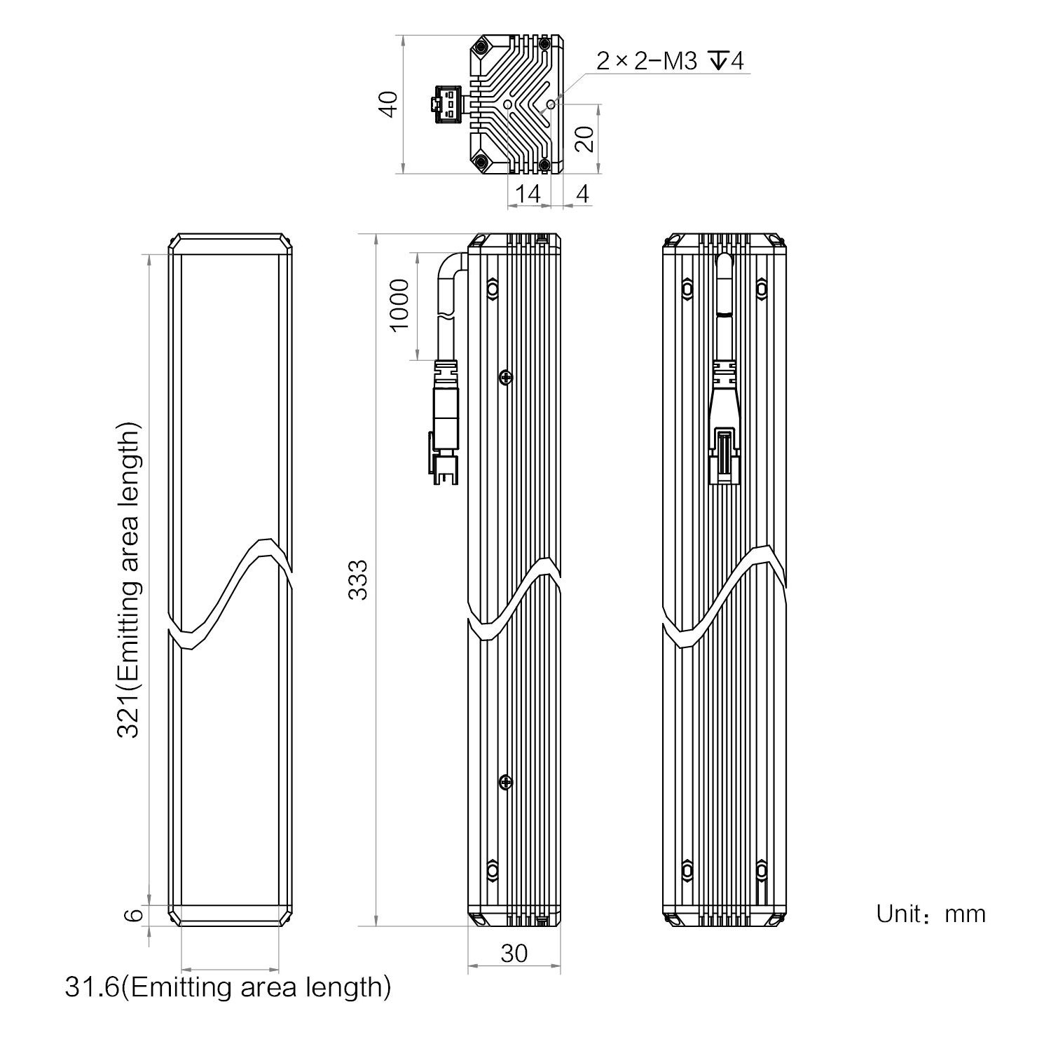 | Emitting area dimensions | 321 mm × 31.6 mm | |