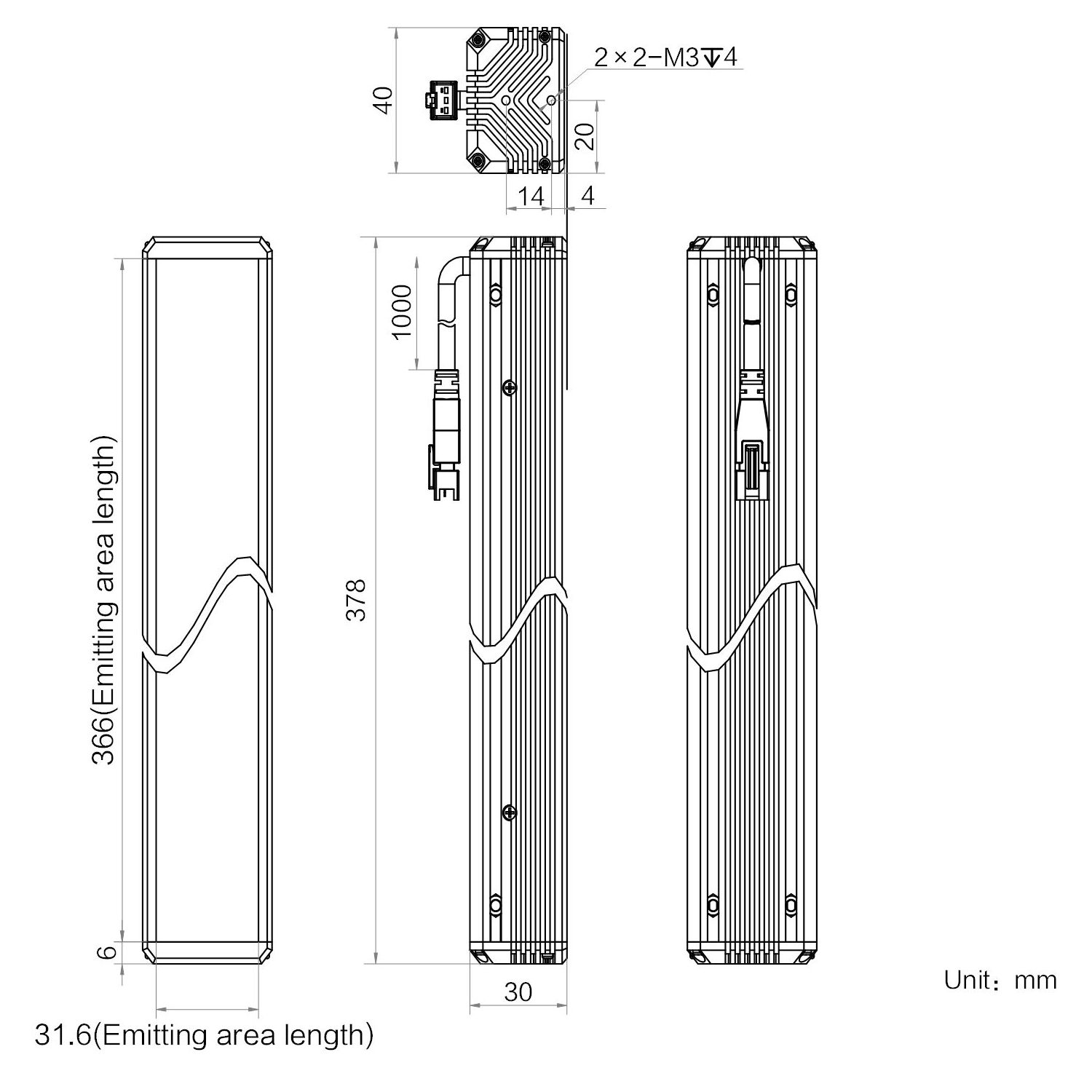 | Emitting area dimension | 366 mm × 31.6 mm | |