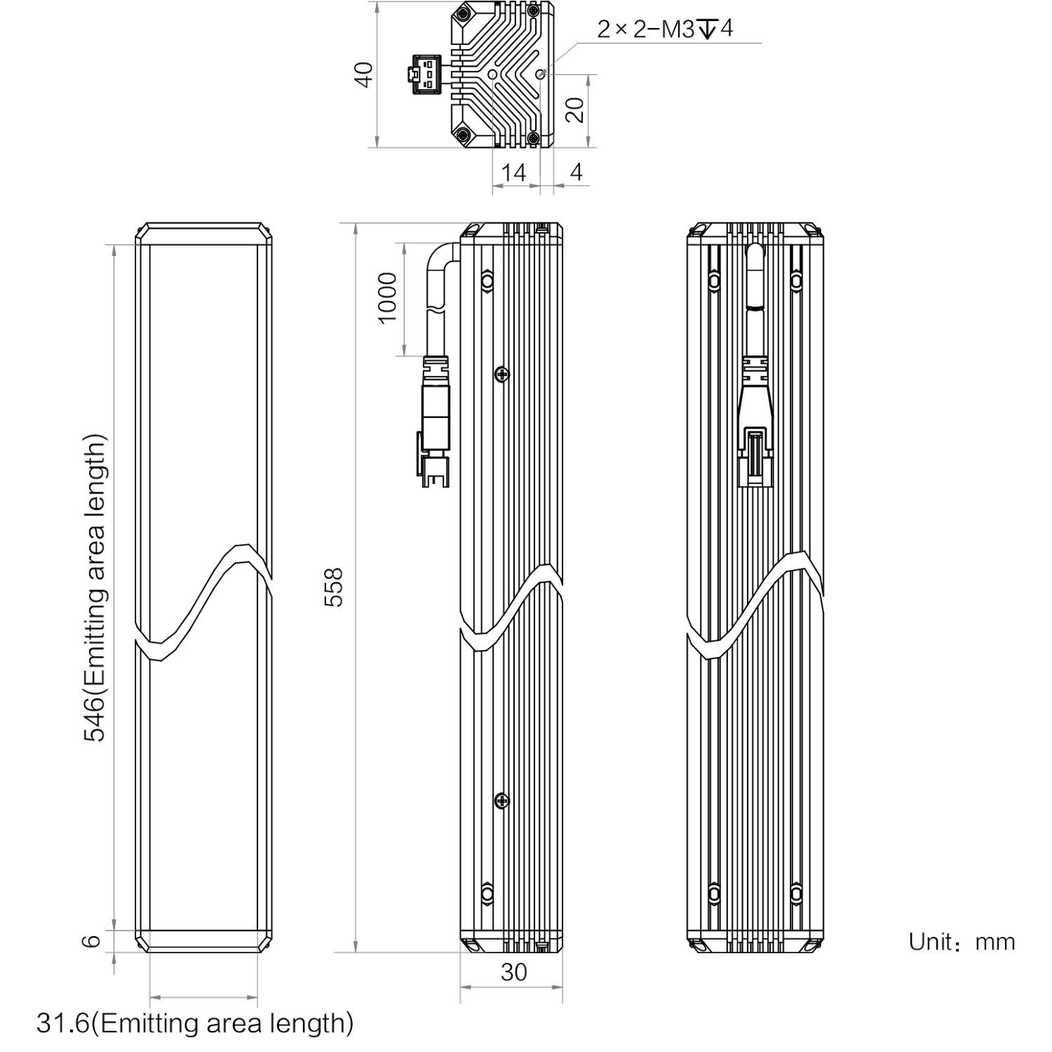 | Emitting area dimension | 546 mm × 31.6 mm | |