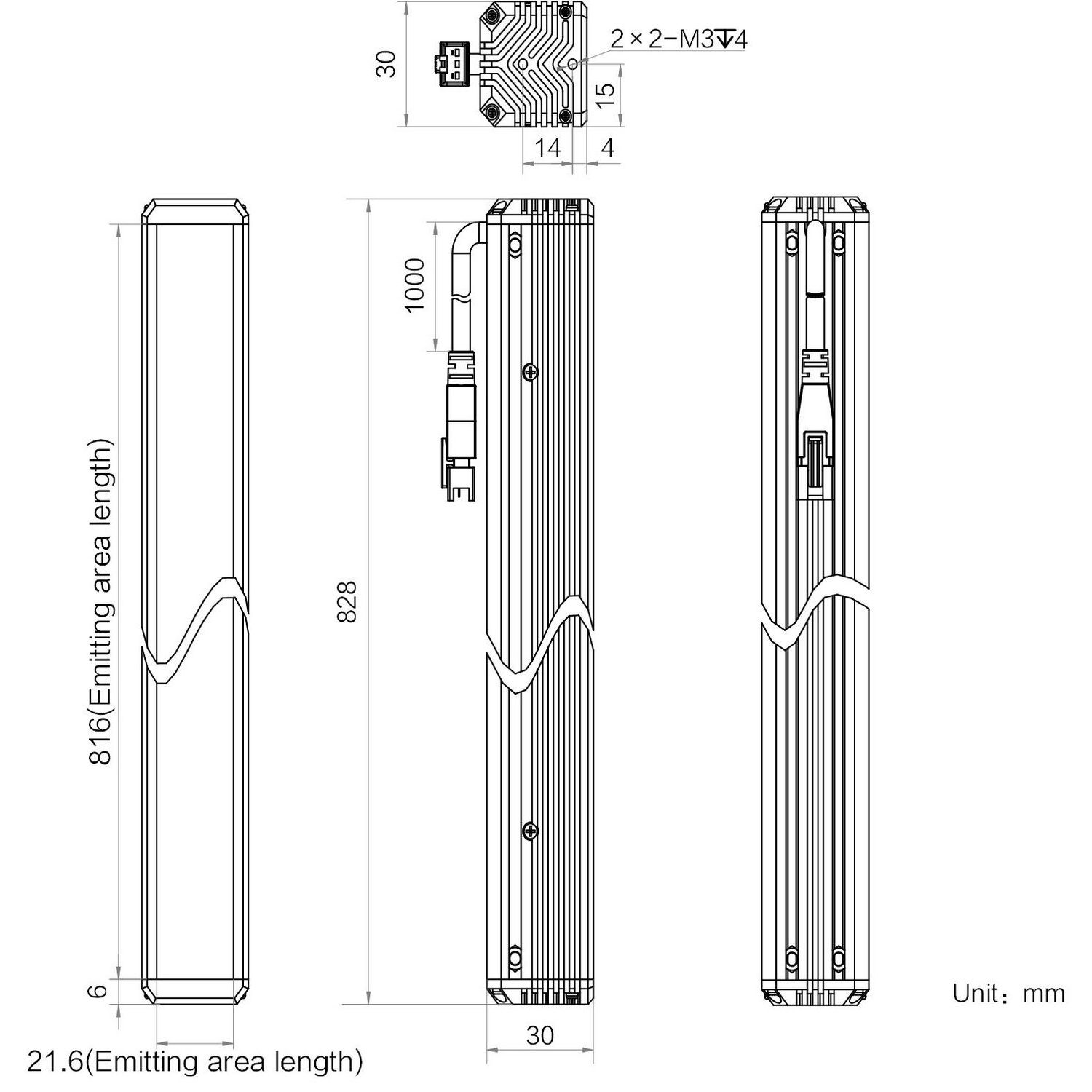 | Emitting area dimension | 816 mm × 21.6 mm | |
