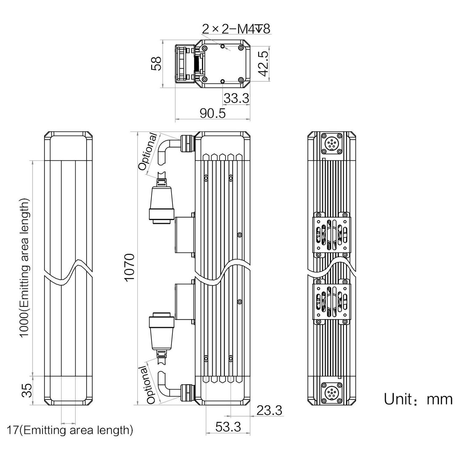 | Emitting area dimensions | 1000 mm × 17 mm | |