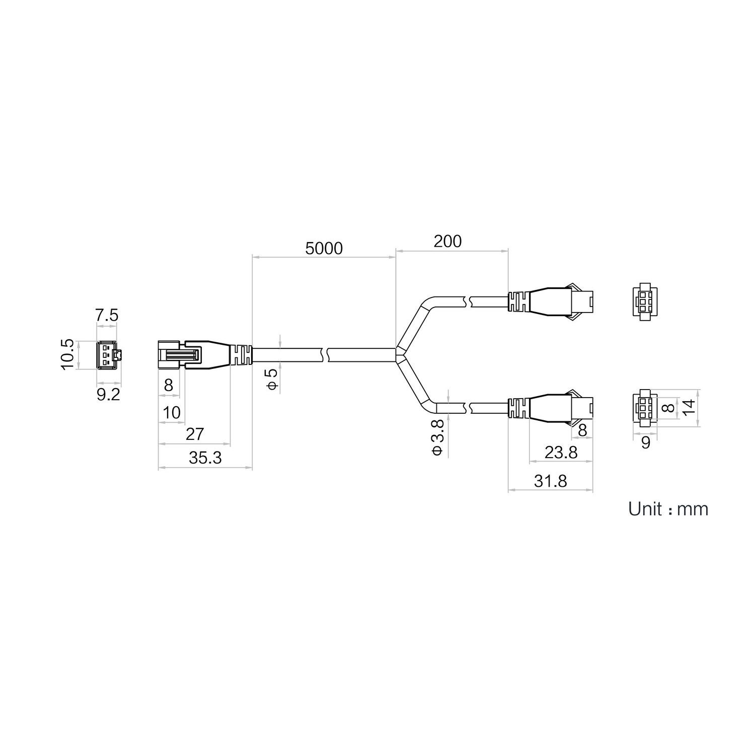 | Wire harness diameter | φ5 mm | |