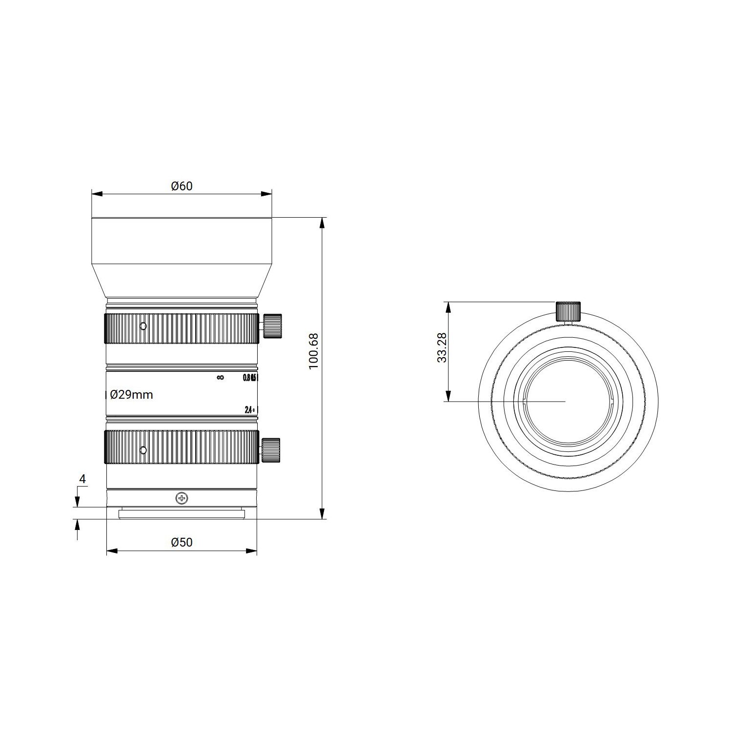 | Type | 25mm, F2.4, Image Size φ29mm, Recommended Magnification 0.04~0.18X, M42-Mount | |