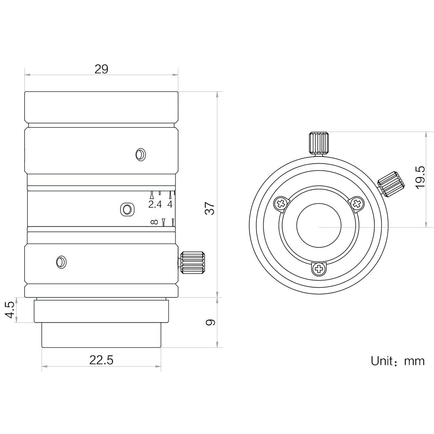 | Type | 12mm, F2.4, 1/1.8″, 10MP Lens,C-Mount | |