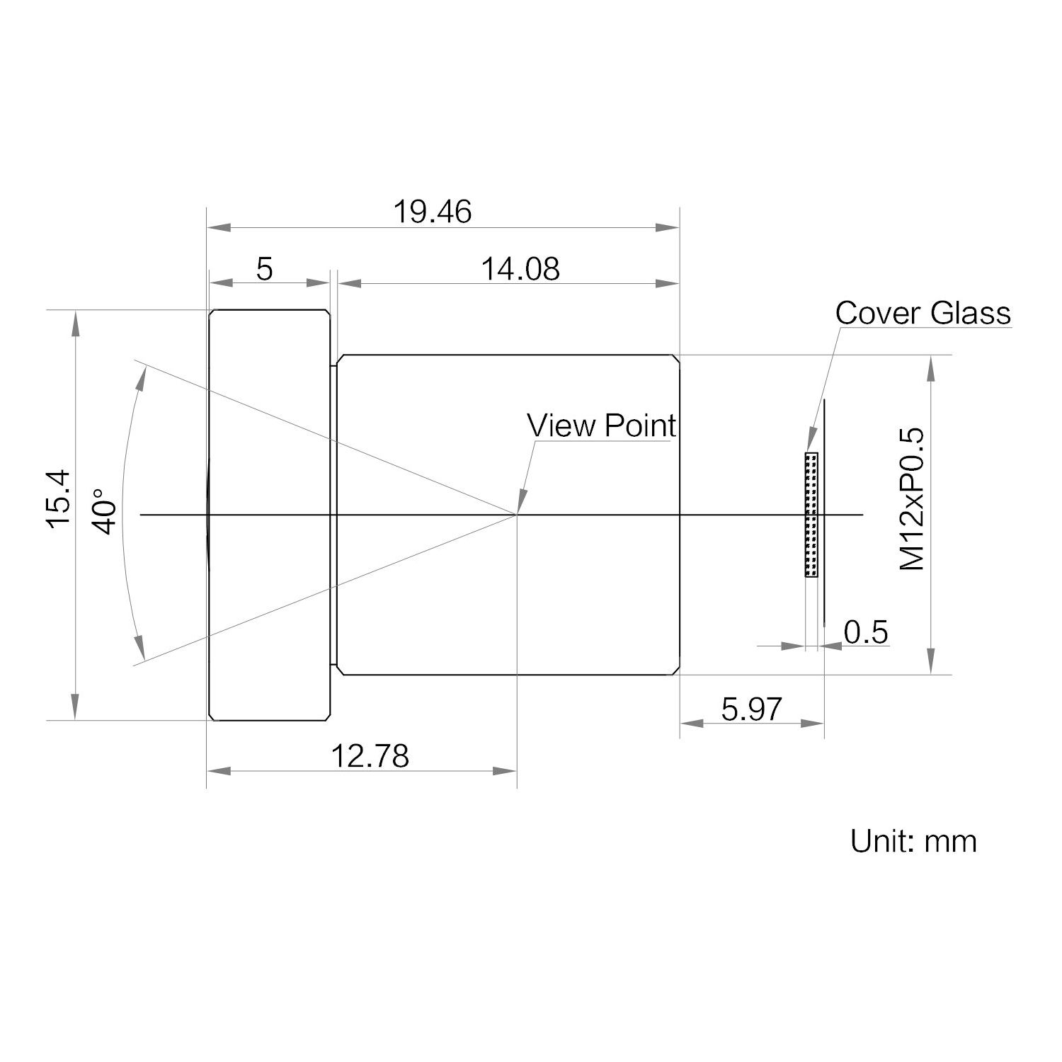 | Type | 12mm, F2.8, 1/1.8″, 5MP Lens, M12-Mount | |