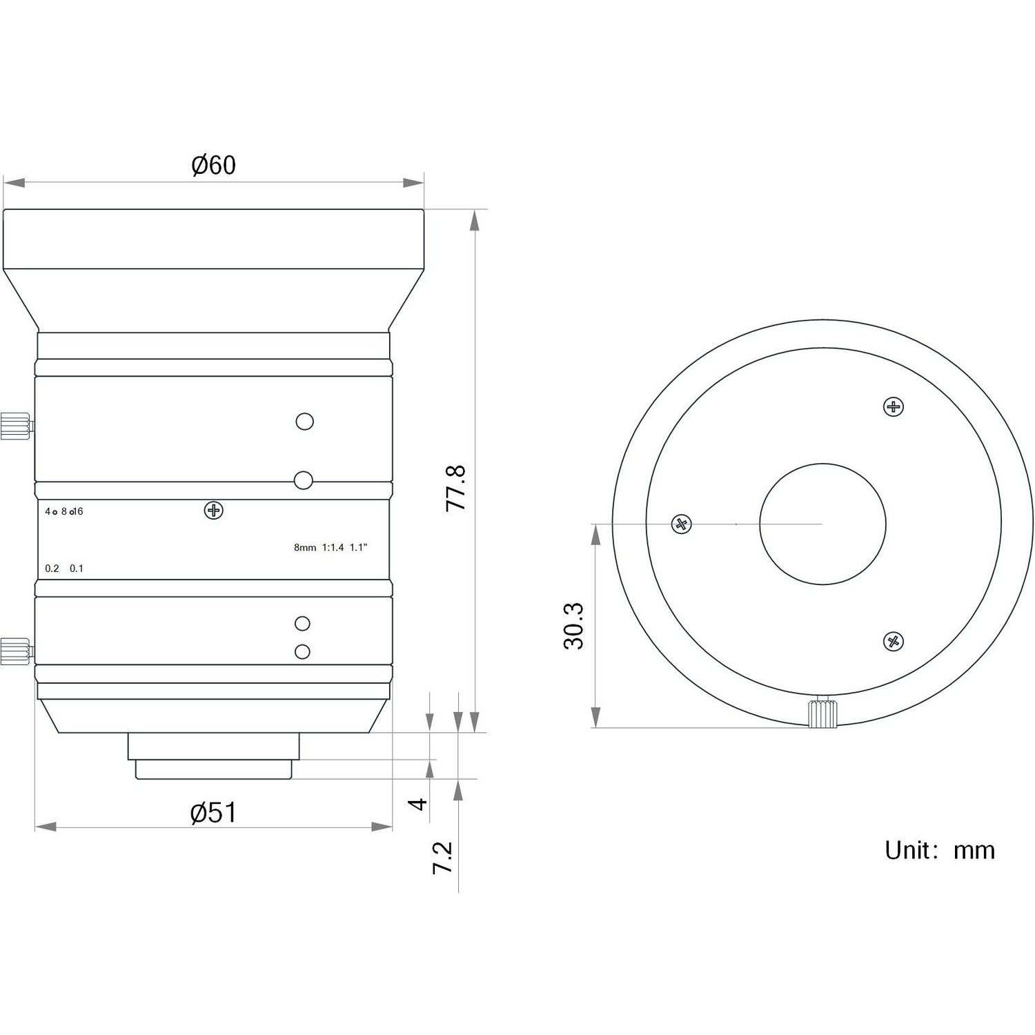 | Type | 8mm, F1.4, 1.1″, 12MP Lens, C-Mount | |