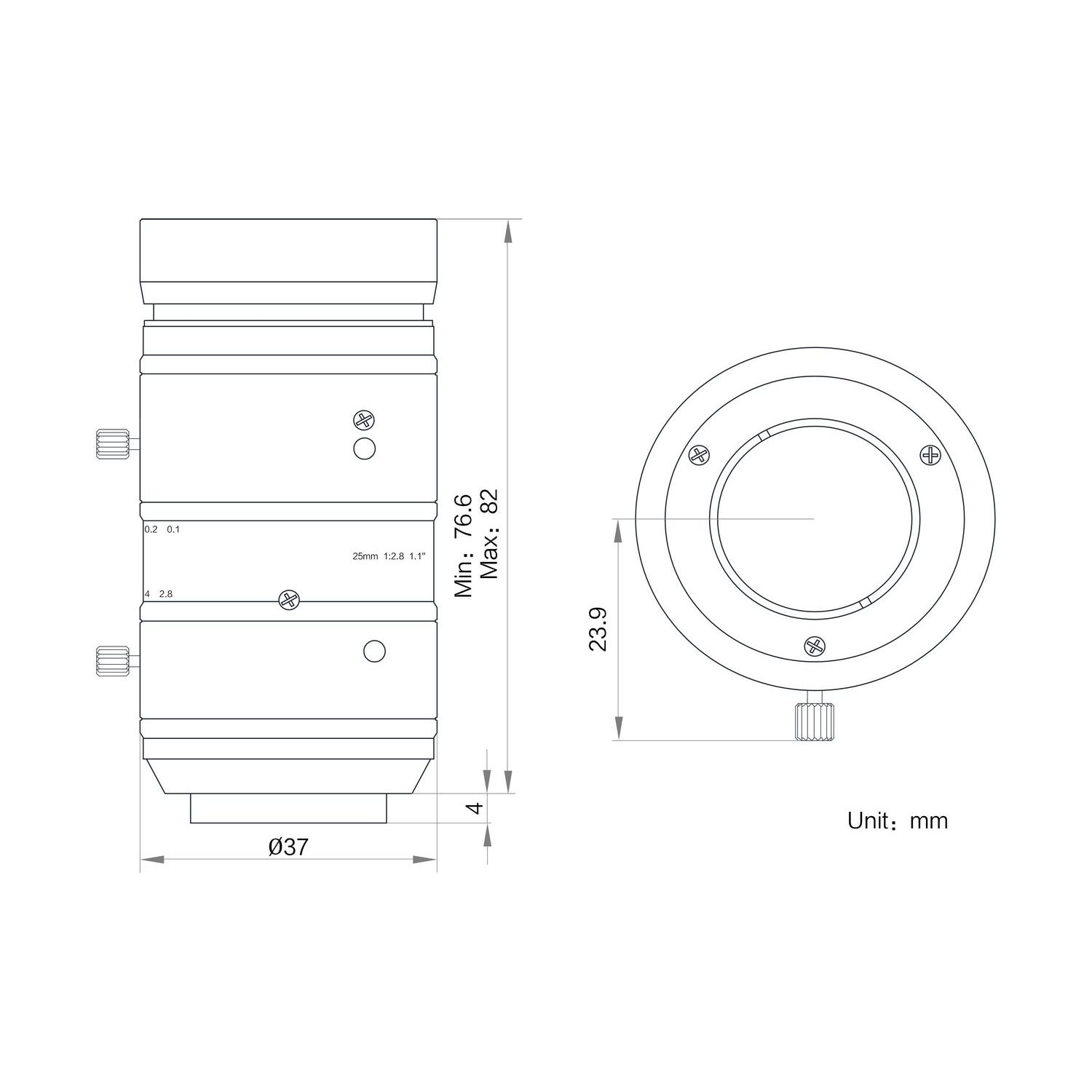 | Type | 25mm, F2.8, 1.1″, 12MP Lens, C-Mount | |