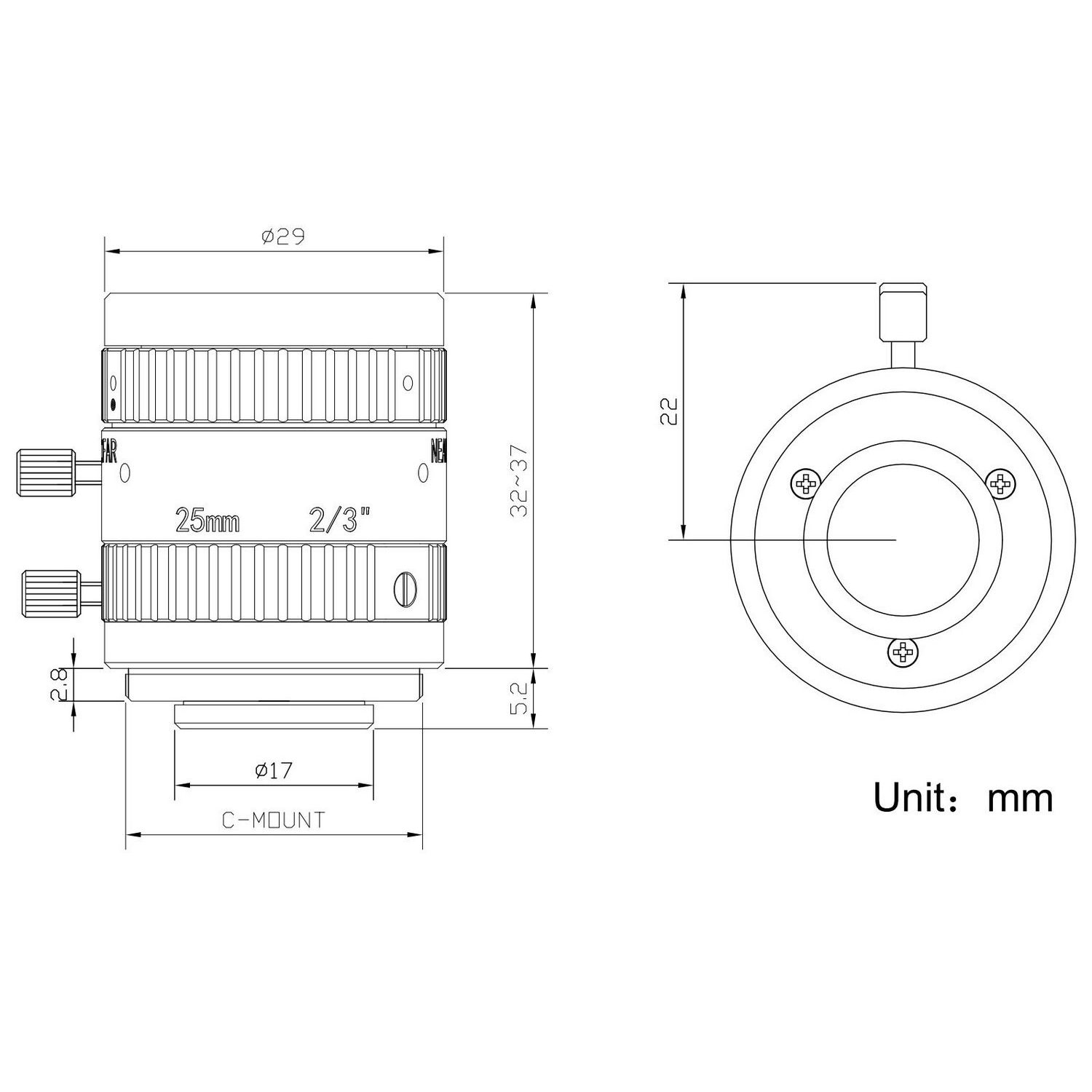 | Type | 25mm, F1.8, 2/3″, 5MP Lens, C-Mount | |