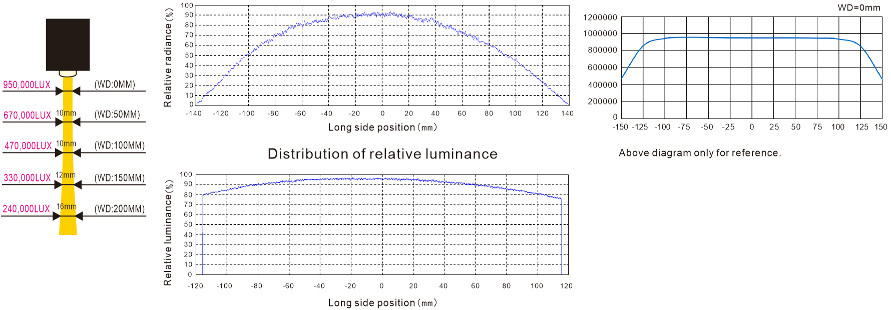 The high uniformity line light is improved on the basis of the high power line light. High-power chip LEDs are adopted and high-uniform diffuser is built in, which effectively solves the problem of uneven illumination. It is applied to occasions of continuous inspection.