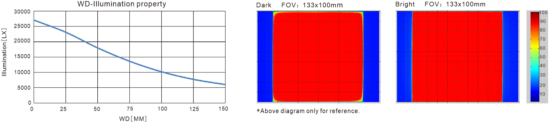 Illumination property diagram (LTS-2PFT100100-W model) & Uniformity (Relative irradiance):