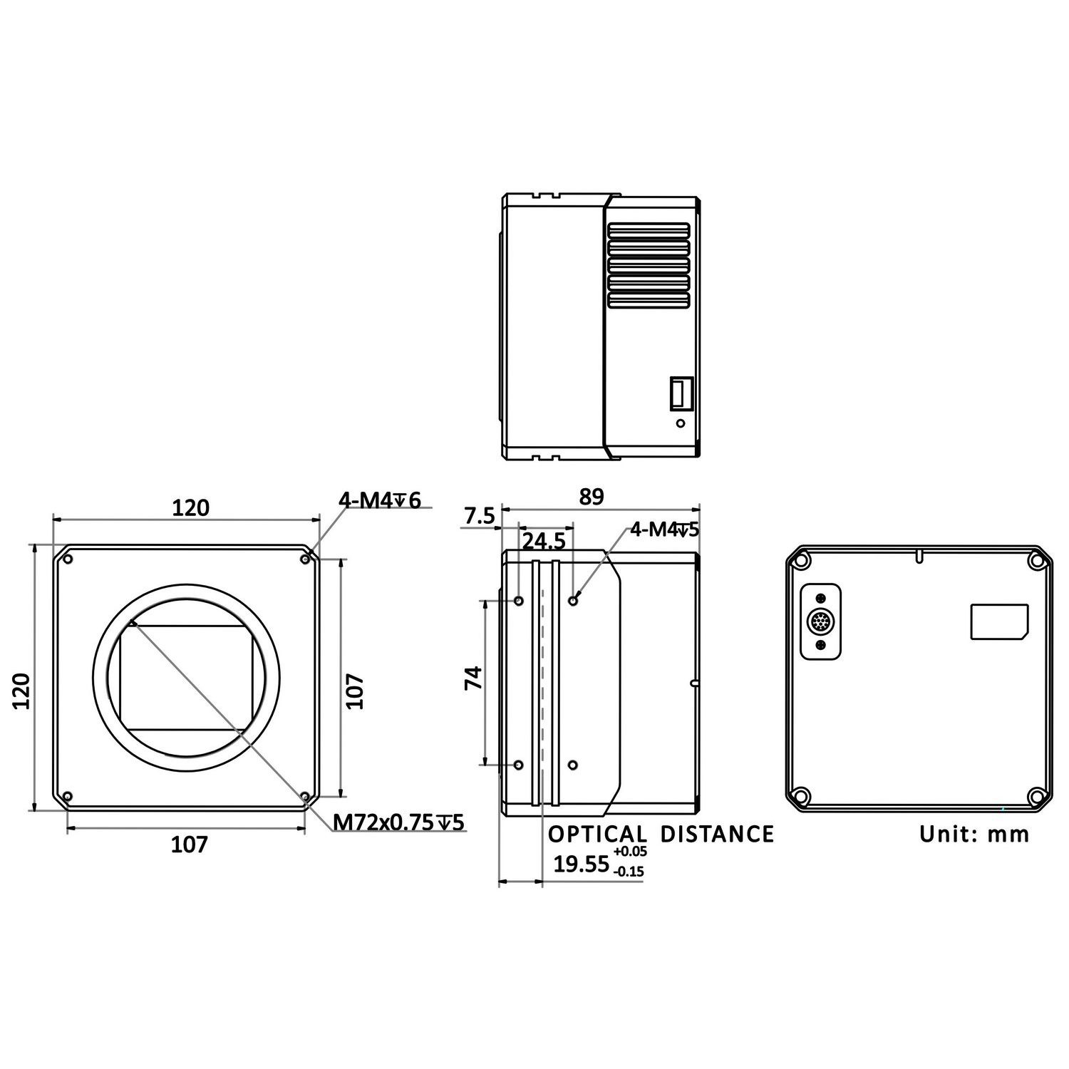 | Mechanical | Lens mount | M72*0.75, optical back focal length 19.55 mm (0.8″) |