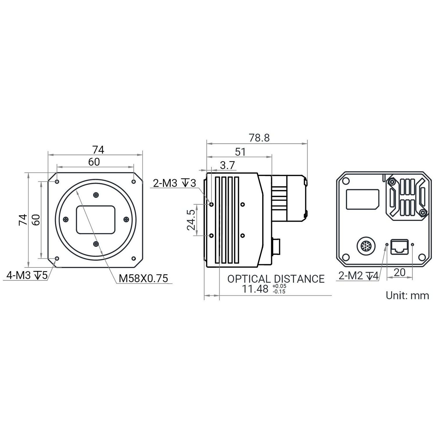| Mechanical | Lens mount | Flange back focal length 11.48 mm (0.5") |