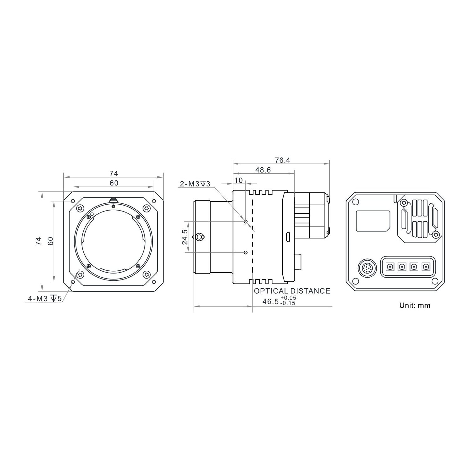 - Adopts global shutter CMOS to provide high dynamic range, SNR, and high-quality image.