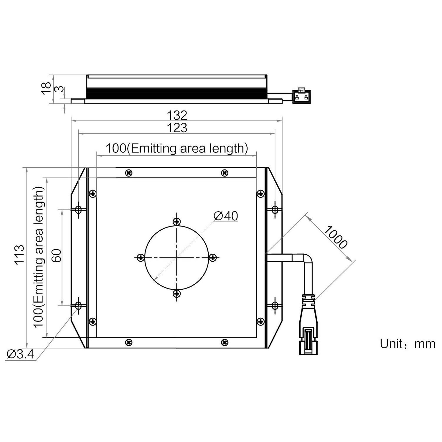 | Emitting area dimensions | 100 mm × 100 mm | |