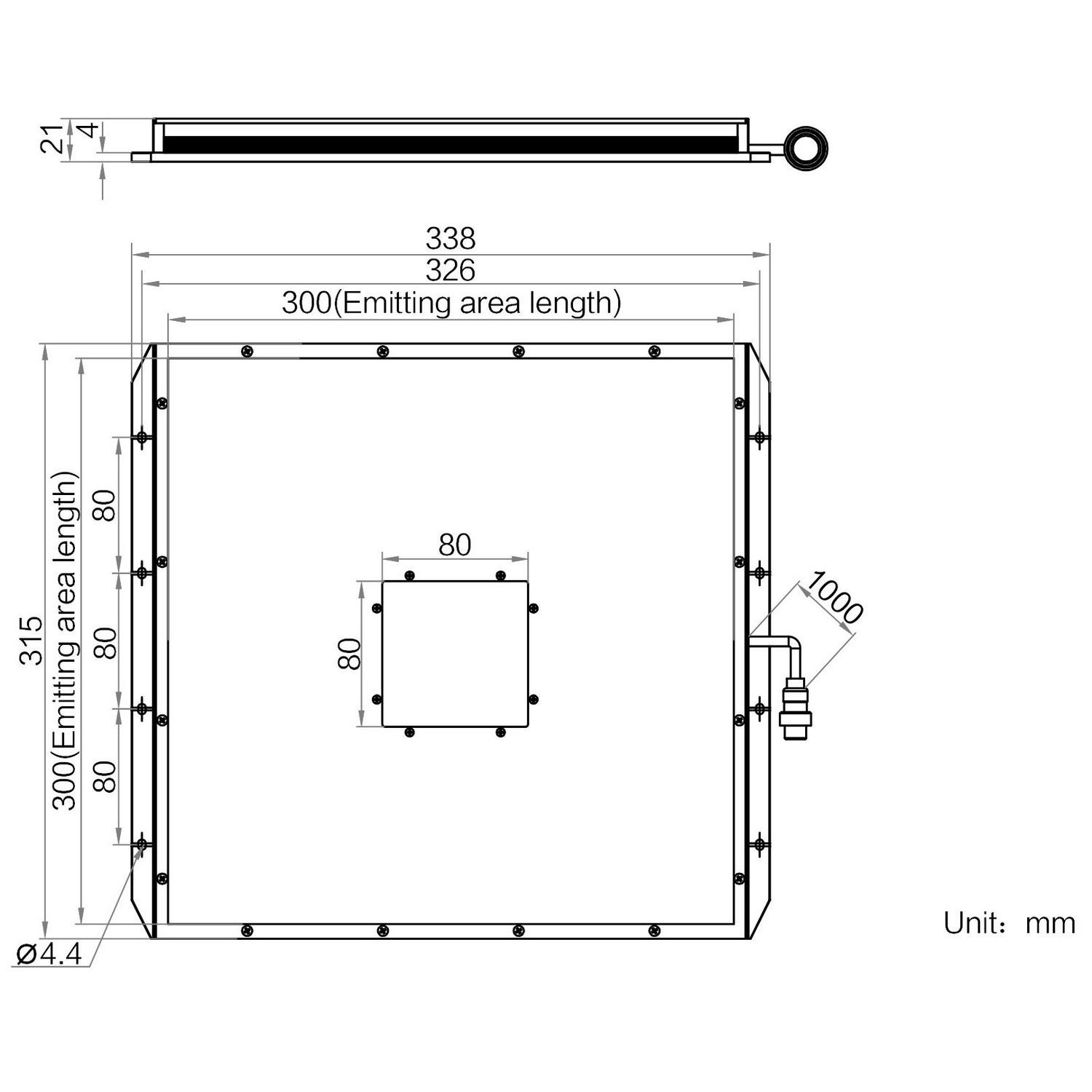 | Emitting area dimensions | 300 mm × 300 mm | |
