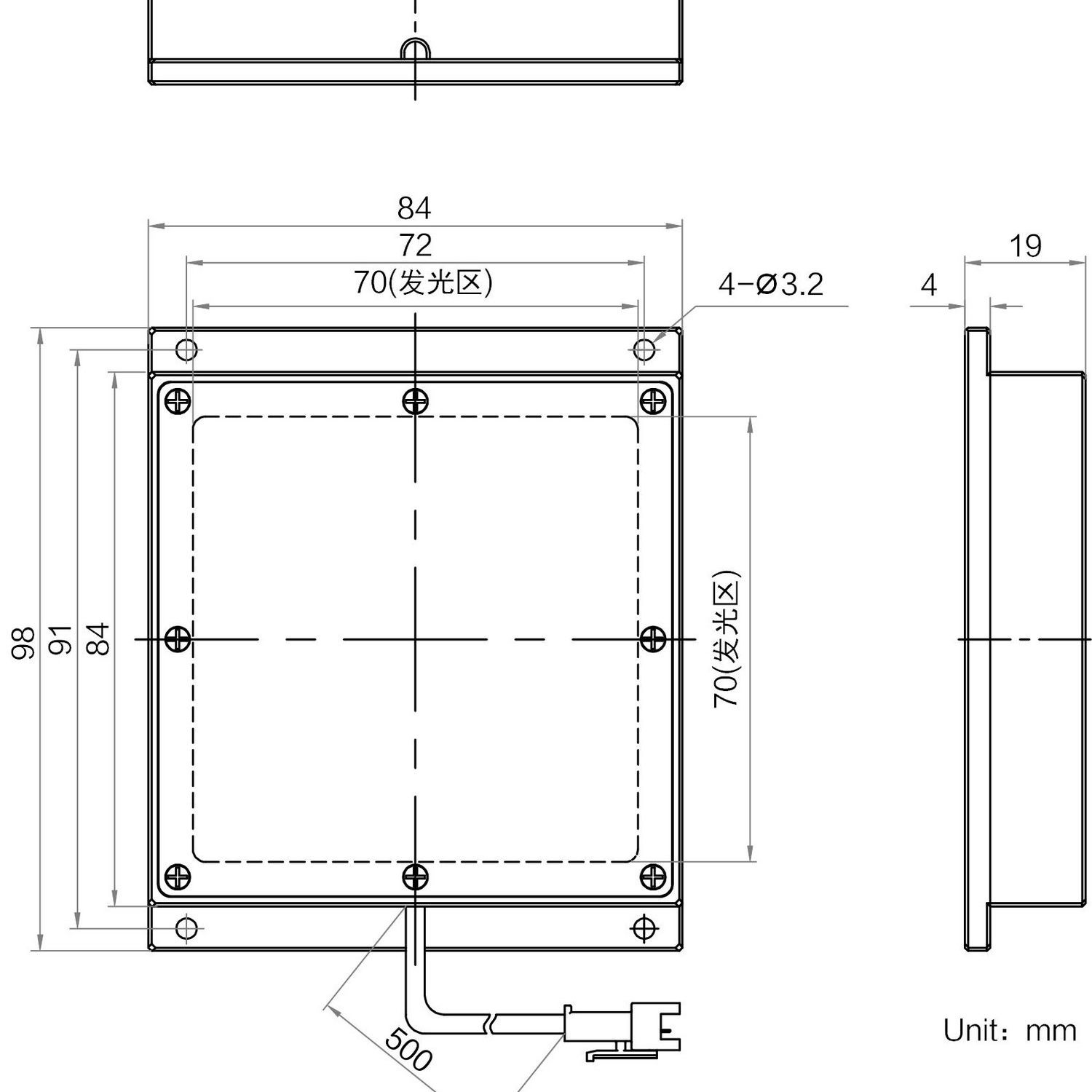 | Luminous area size | 70 mm × 70 mm | |