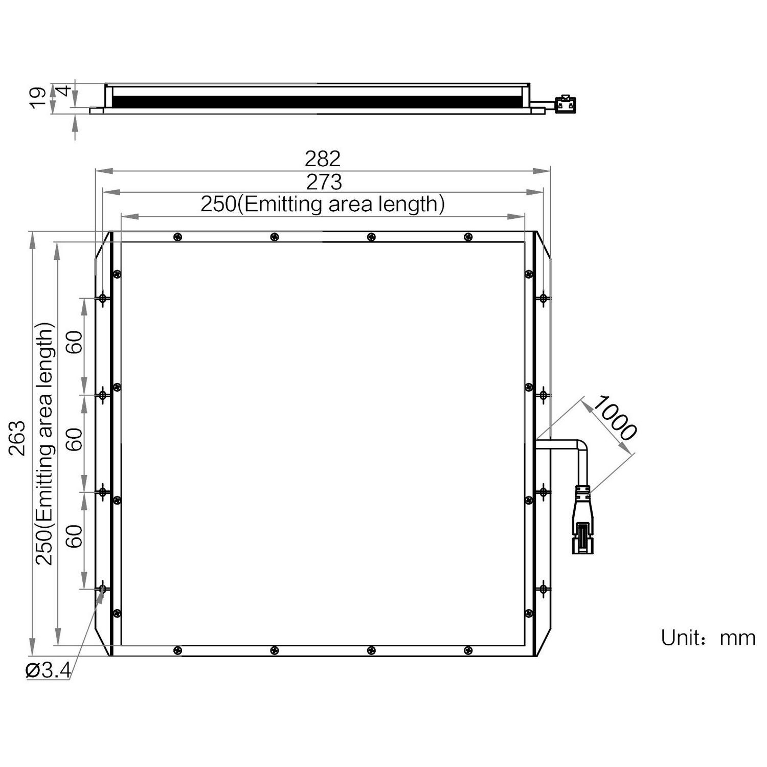 | Emitting area dimensions | 250 mm × 250 mm | |