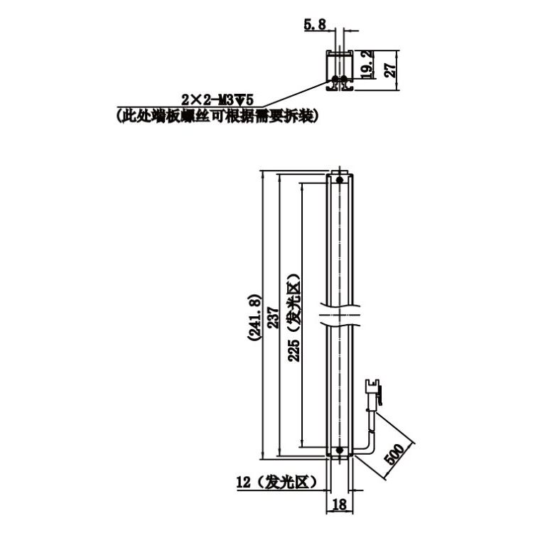 | Light-emitting area diameter | 225 mm × 12 mm | |