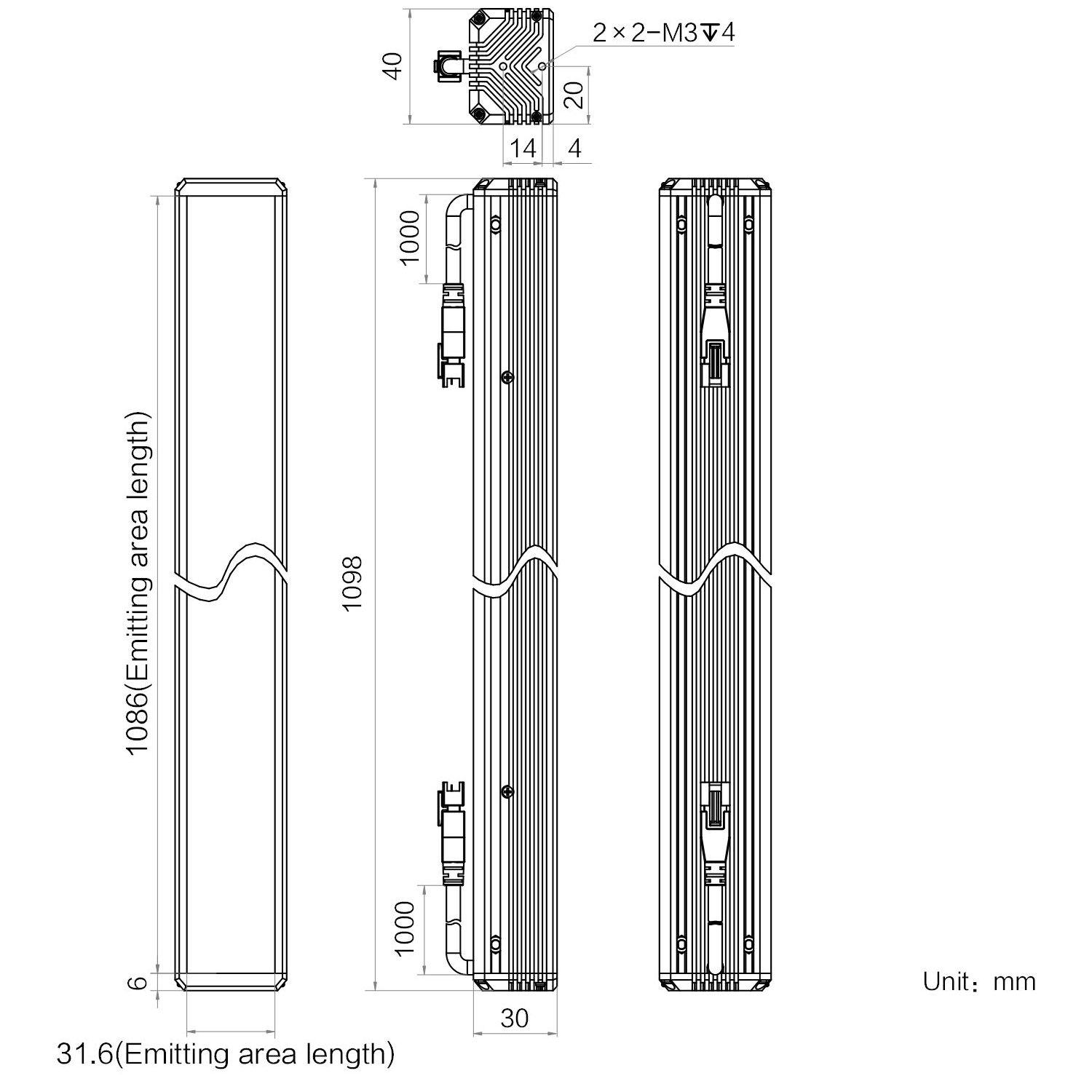 | Emitting area dimension | 1086 mm × 31.6 mm | |