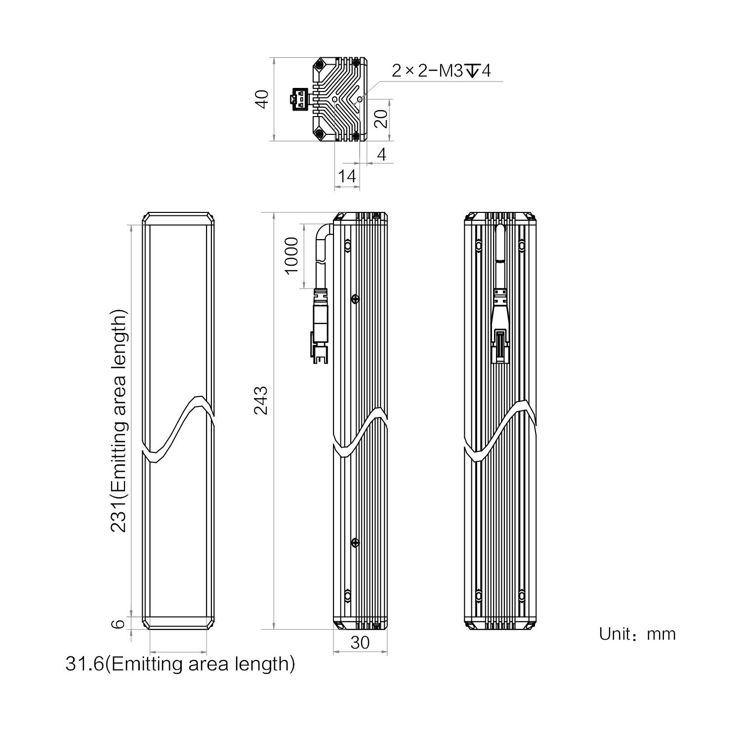 | Emitting area dimension | 231 mm × 31.6 mm | |