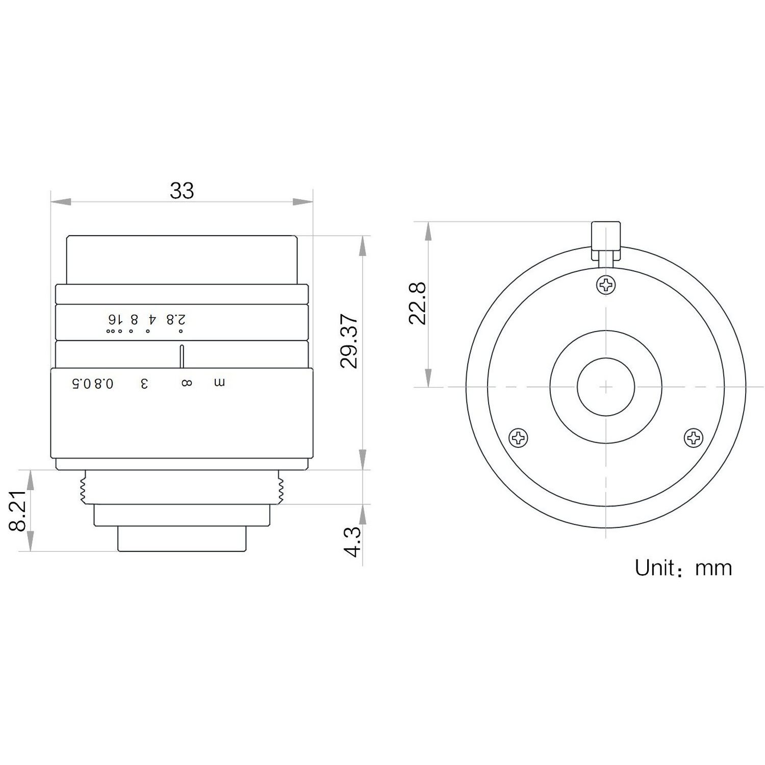 | Type | 30mm, F2.8, 1/1.8″, 6MP Lens, C-Mount | |