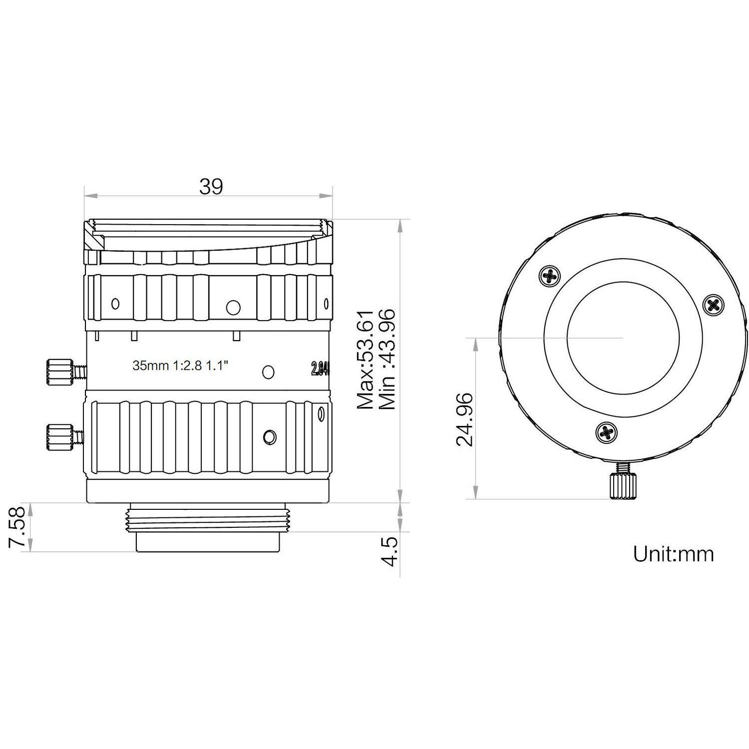| Type | 35mm, F2.8, 1.1″, 12MP Lens, C-Mount | |