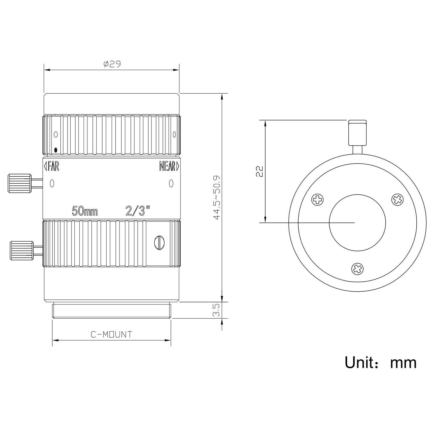 50mm, F2.8 ~ F16, Ø 11mm (2/3''), C-Mount