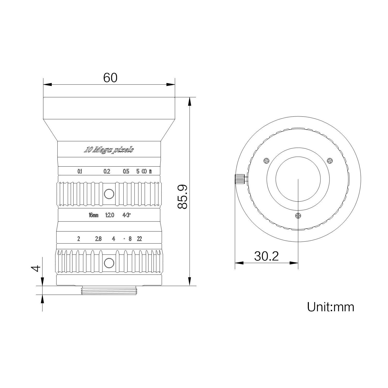 16mm, F2.0 ~ F22, Ø 23mm (4/3''), C-Mount